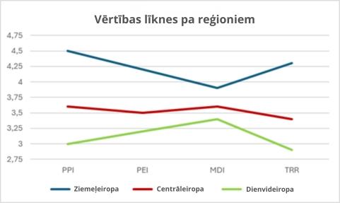 Diagramma liecina par vienkāršu faktu: ziemeļu reģiona līnija atrodas visaugstāk un ir